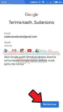 - Selesai, alamat email Gmail pun jadi, pilih tombol Berikutnya untuk keluar