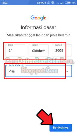 Pastikan kalau Tanggal, Bulan dan Tahun Kelahiran yang kamu masukan ketika bikin akun Google yakni genap 13 tahun. Karena batasan usia minimal pemilik akun Google di Indonesia adalah 13 tahun, dibawah itu tidak bisa membuat akun Google.