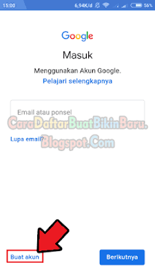 - Perintah untuk memasukan alamat email Gmail jika kamu sudah punya, tapi jika belum ya pilih link Buat Akun