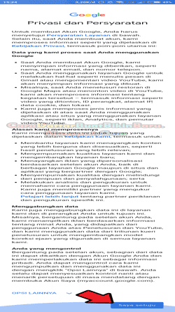 - Berlanjut ke tampilan Privasi & Persyaratan pemilik akun, silahkan dibaca atau langsung ke tombol Saya Setuju