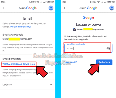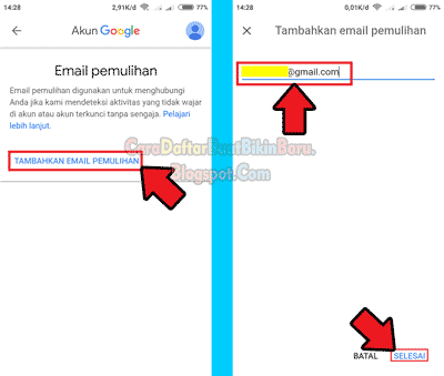 - Nah, sekarang tab link Tambahkan Alamat Email Pemulihan (Gambar jadi satu dibawah hehe)