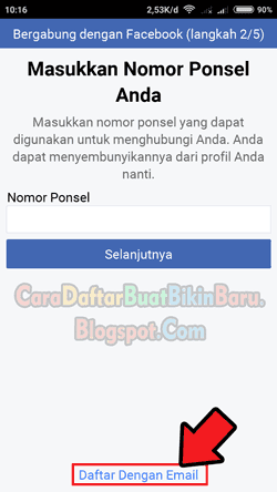 - Di perintah memasukkan Nomor Hp pilih tautan Daftar Dengan Email