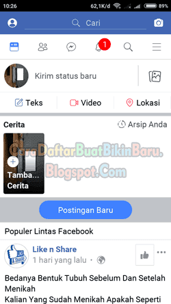 - Tampilan akan mengarah langsung ke Beranda akun FB baru. Finish!