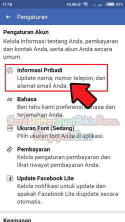 - Pilih opsi Informasi Pribadi