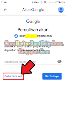 - Kemudian kamu akan diminta sekali lagi untuk mencoba mengingat-ingat kata sandi Gmail terakhir yang digunakan, langsung klik aja tautan Coba Cara Lain
