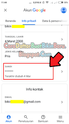- Setelah itu kamu arahkan ke Info Pribadi dan klik opsi Sandi yang ada simbol titik-titiknya itu