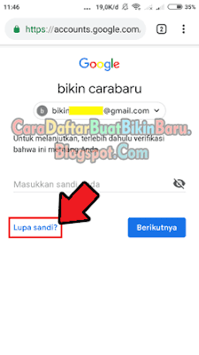 - Berikutnya abaikan perintah memasukan password Gmail, lanjut pilih link Lupa Sandi?