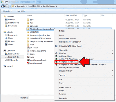 Sebelum mengirimkan file yang berbentuk folder tersebut, agar berhasil maka nanti kita edit dulu jadi Zip atau Rar. Berikut langkah-langkahnya: